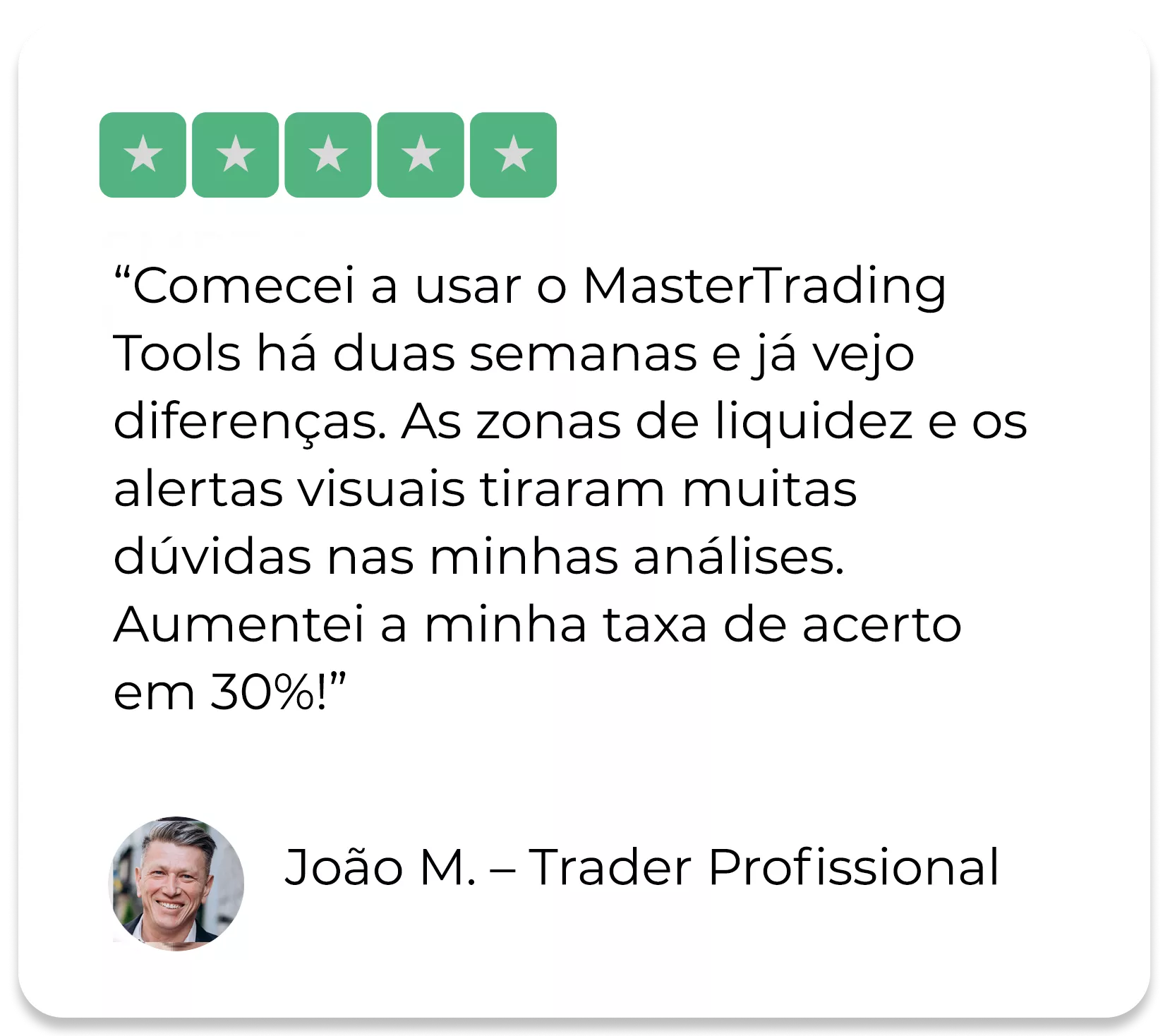 Somos um grupo de traders profissionais com anos de experiência em Smart Money Concepts (SMC) e operamos diariamente no mercado. Desenvolvemos o MasterTrading Tools com base nas necessidades reais de quem vive o trading todos os dias.